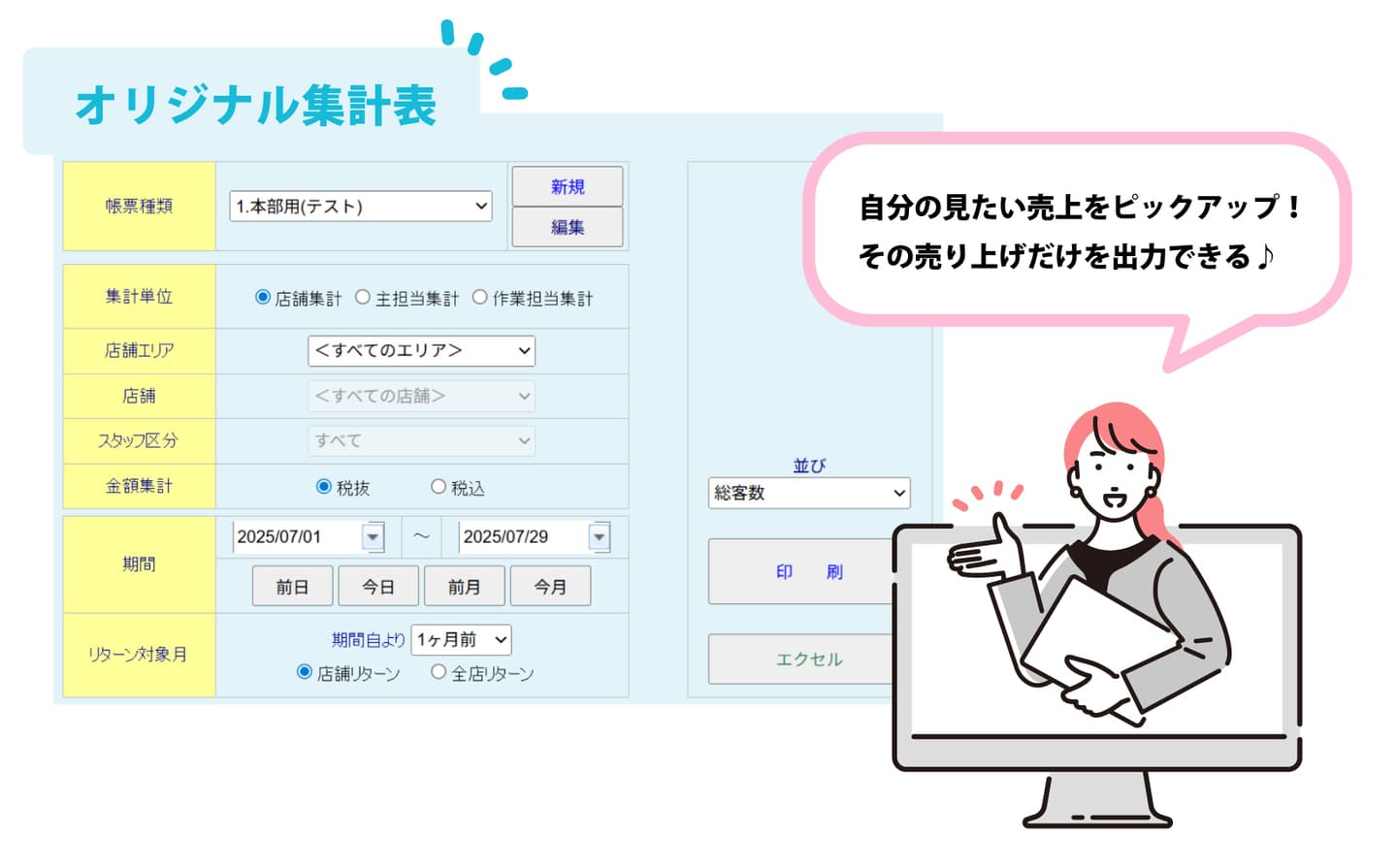 Salon de Netでは、そういった数字を「オリジナル集計表」で簡単に出力できます。