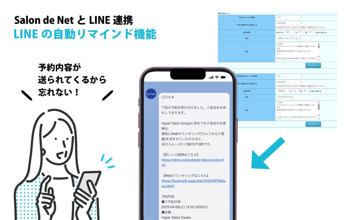 でも今はSalon de NetとLINE連携して、自動リマインド機能を活用しています。