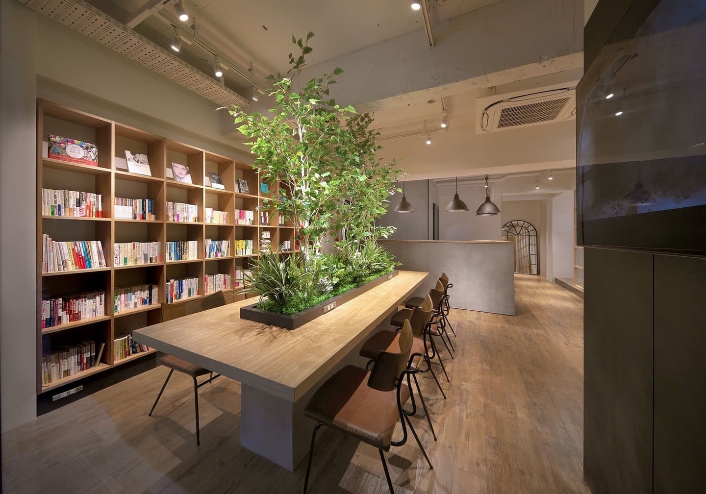棚には本も並んでいて、自由に手に取って読んでいただけ今までにないモダンで温かみのある空間を演出しております。