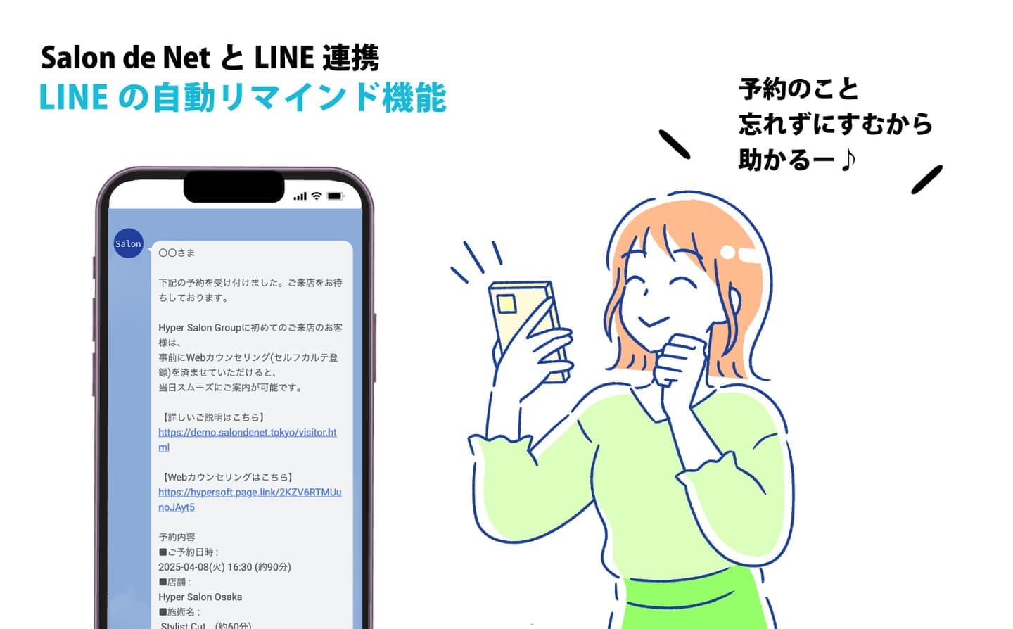 LINEは多くのお客様が利用しているアプリなので、予約利用するのにも心理的なハードルが低いのもポイントです。