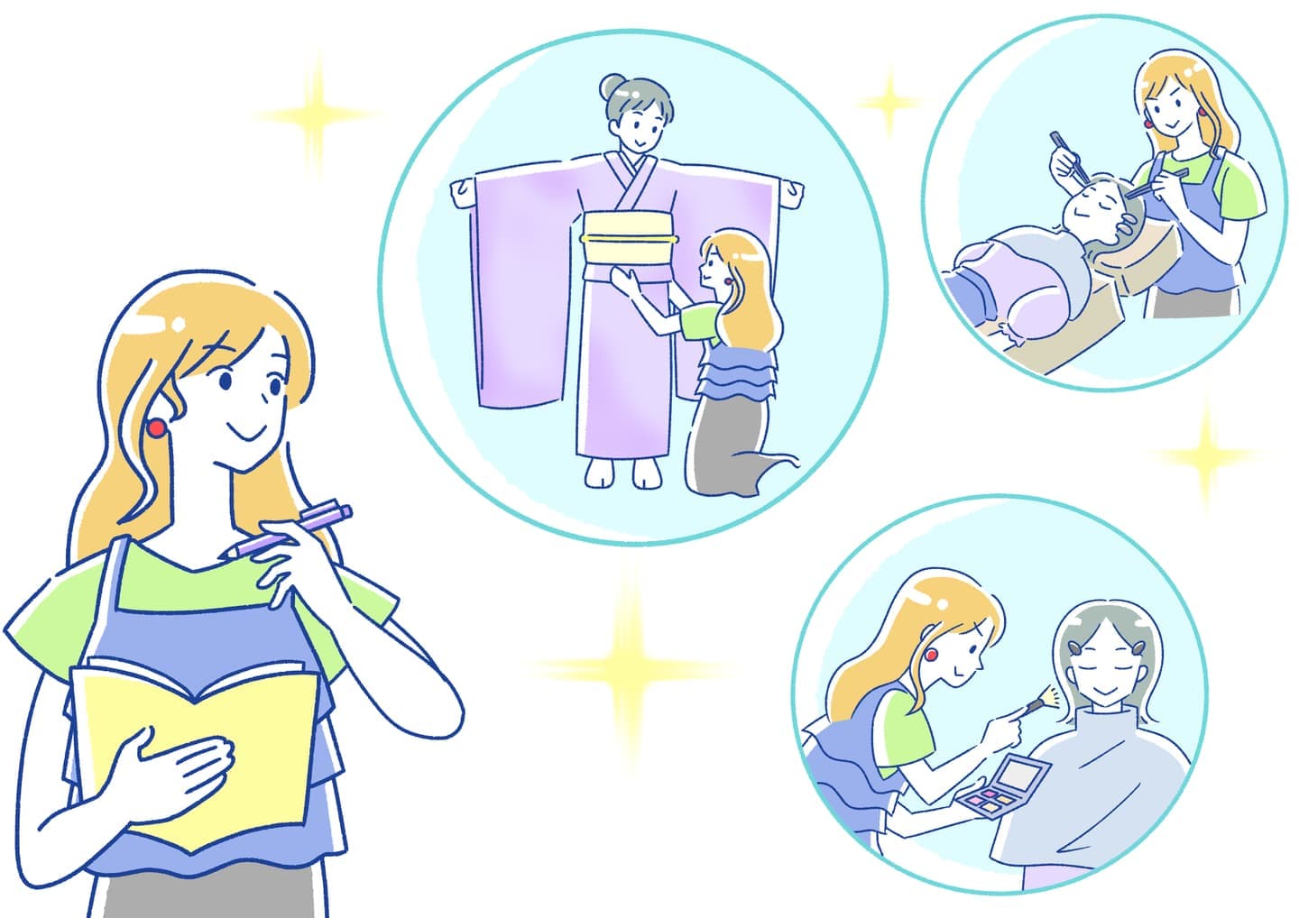 具体的には、アイブロウやメイク、着付けなどの分野に取り組めるようにしており、幅広いスキルを身につけることが可能です。