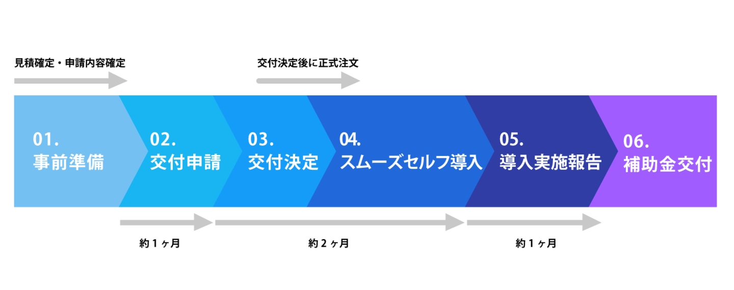 補助金の交付までには、申請・交付決定後にも導入・実施時広告などの手続きが必要です。