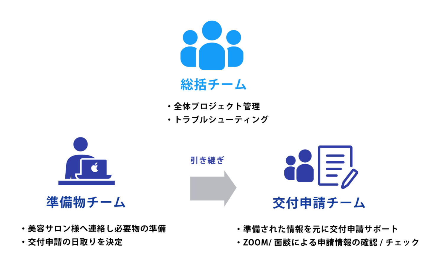 申請フェーズ毎にチームを形成し、