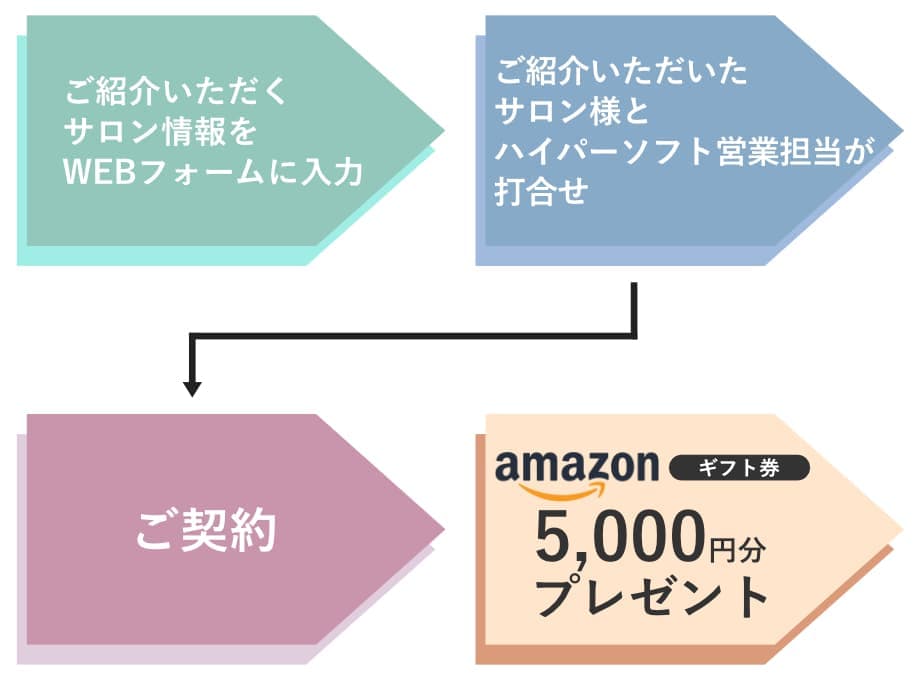Salon de Net (POSレジ) の導入をご検討されている、友人・お知り合いのサロン様をご紹介いただき、ご成約に至った場合、